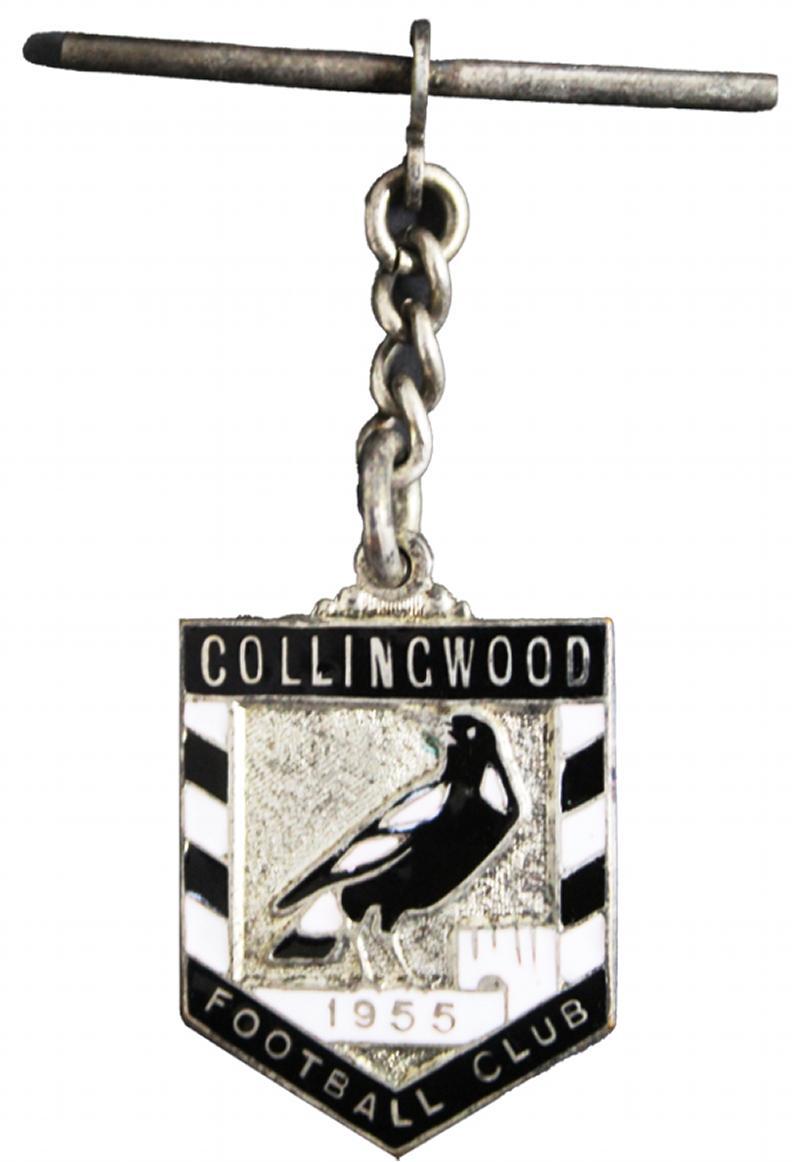 COLLINGWOOD: 'Collingwood Football Club/1955' membership badge (the first year these were issued), with number "1154" engraved on the reverse. (Image1)