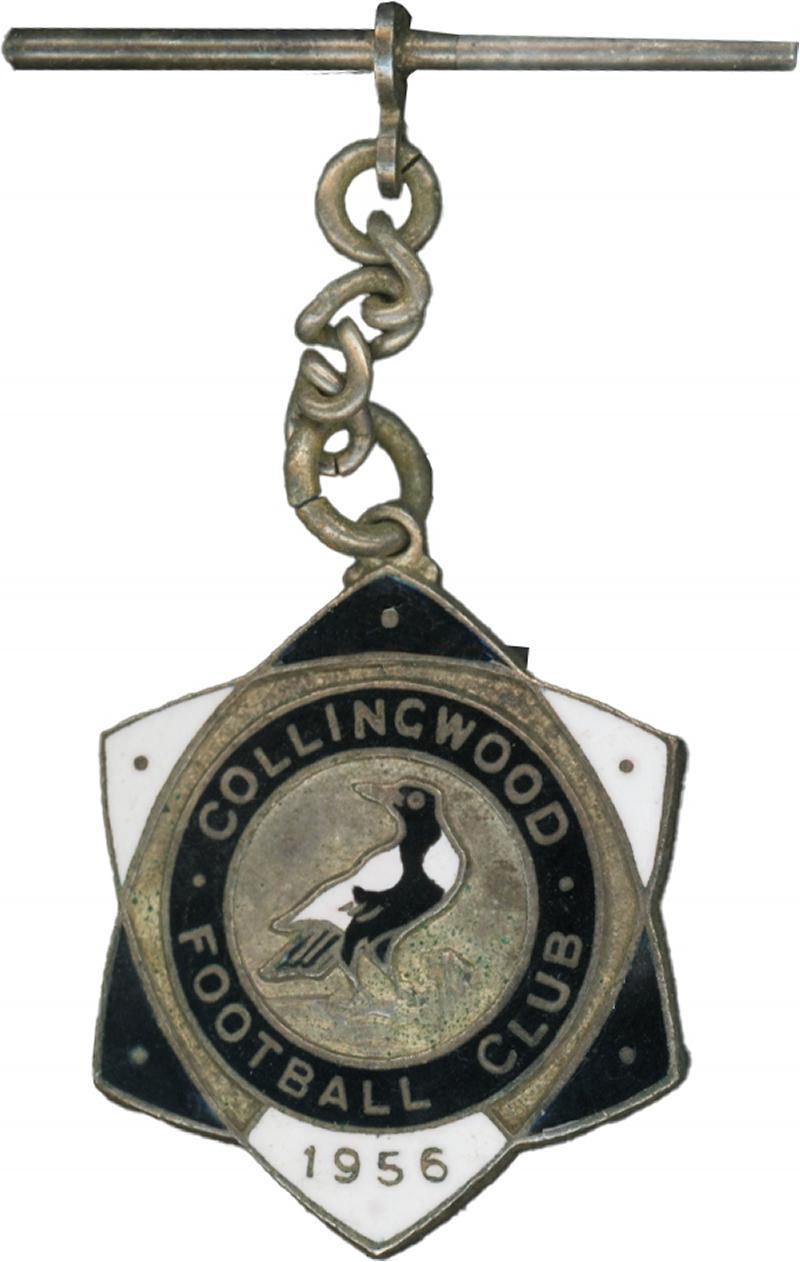 COLLINGWOOD: 'Collingwood Football Club/1956' membership badge (second year), with number "846" engraved on the reverse. (Image1)