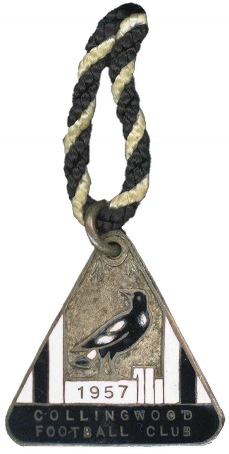 COLLINGWOOD: 'Collingwood Football Club/1957' membership badge (third year), with number "846" engraved on the reverse. (Image1)