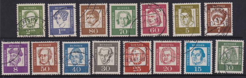 Germany-West Berlin 1961 Famous Germans set of 15. SG B194-208. Cat £35. FU. (Image)