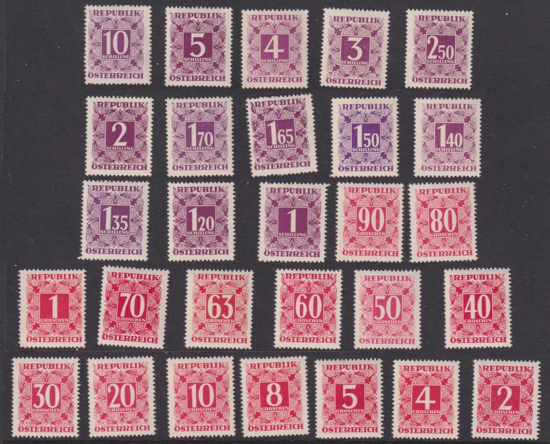 Austria 1949 1Gr-10s Postage Dues set. SG D1178-D1205. Cat £60+. Mint. (Image)