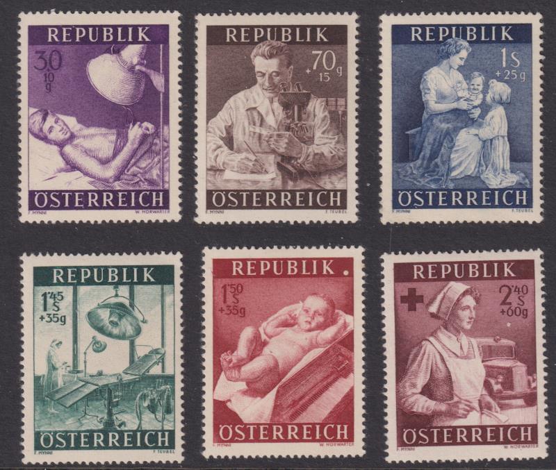 Austria 1954 Health Service Fund set. SG 1256-61. Cat £28. MUH. (Image)