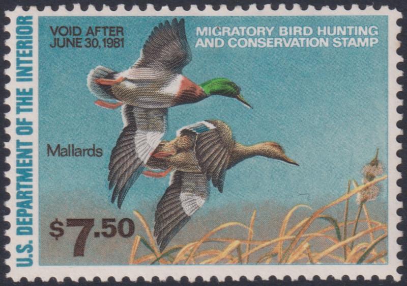 USA 1980 $7.50 Duck Stamp - Mallards. MUH. (Image)