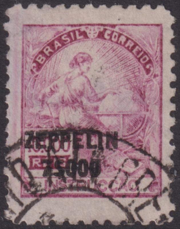 Brazil 1931 "ZEPPELIN 7$000" ovpt on 1918 10,000R mauve. SG 512. Cat £27. FU. (Image)