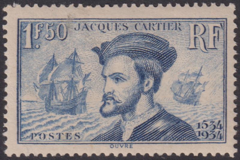 France 1934 1F50 Jacques Cartier Centenary blue. SG 522. Cat £60. Mint. (Image)