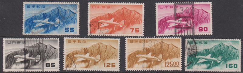 Japan 1951-2 seln of 8 diff airmails & incl 1952 75¥. SG cat £54. FU. (Image)