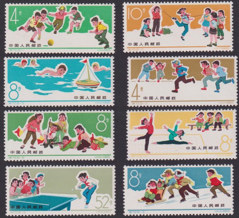 China 1966 Children's Games set (# 8-1 & 8-7 odd tone spot). SG 2296-303. MUH. (Image)