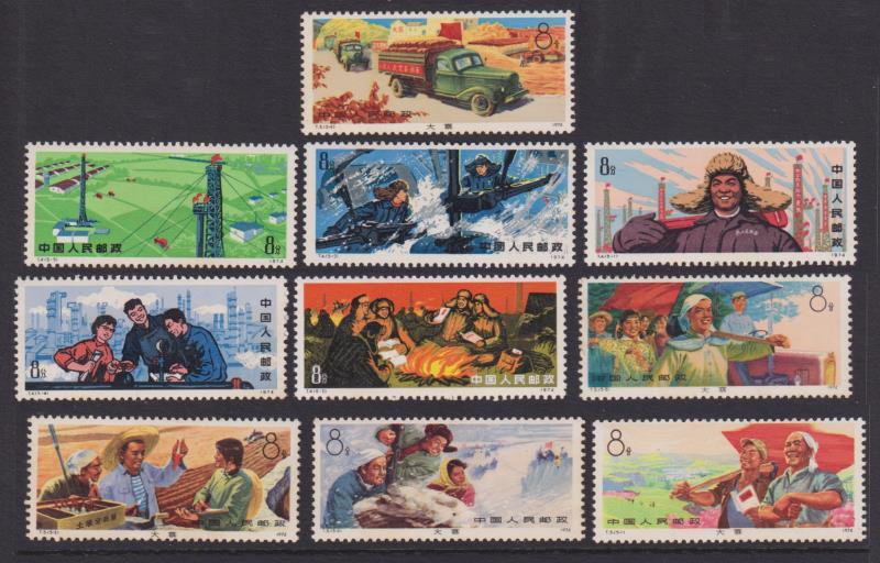 China 1974 Mao's Directives on Industrial & Agricultural Teaching set, odd one slight gum discolouration. SG 2574-83. MUH. (Image)