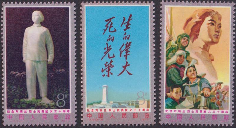 China 1977 Liu Hu-lan's 30th Anniv of Death set. SG 2689-91. Cat £19. MUH. (Image)