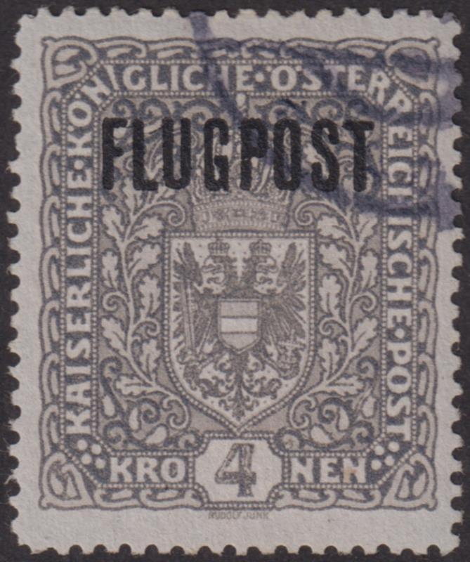 Austria 1918 10Kr Airmail on grey paper. SG 298A. Cat £31. FU. (Image)