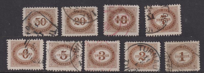 Austria 1894 1Kr-50Kr Postage Dues set. SG D96-104. Cat £190+. FU. (Image)