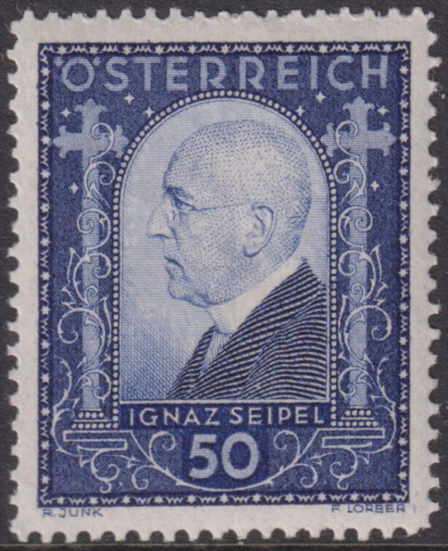 Austria 1932 50g + 50g Dr Seipel. SG 692. Cat £25. MUH. (Image)