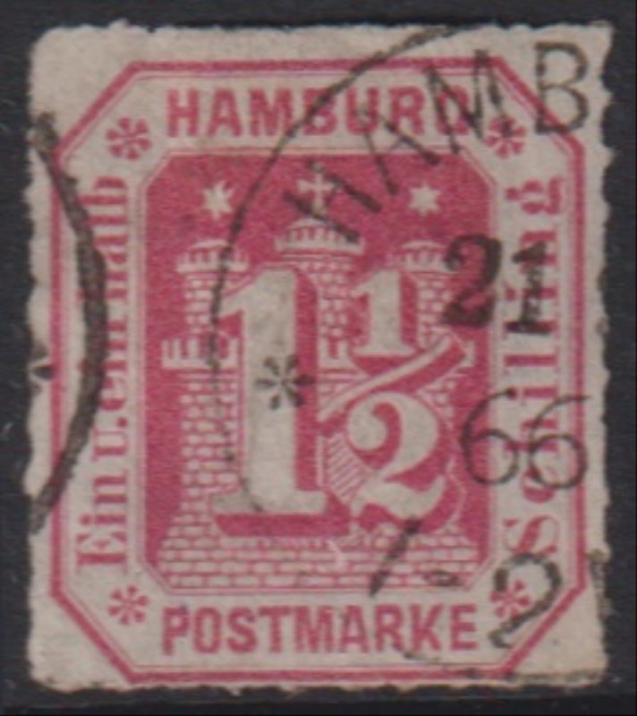Germany-Hamburg 1866 1½s rose, rouletted. SG 45. Cat £200. FU. (Image)