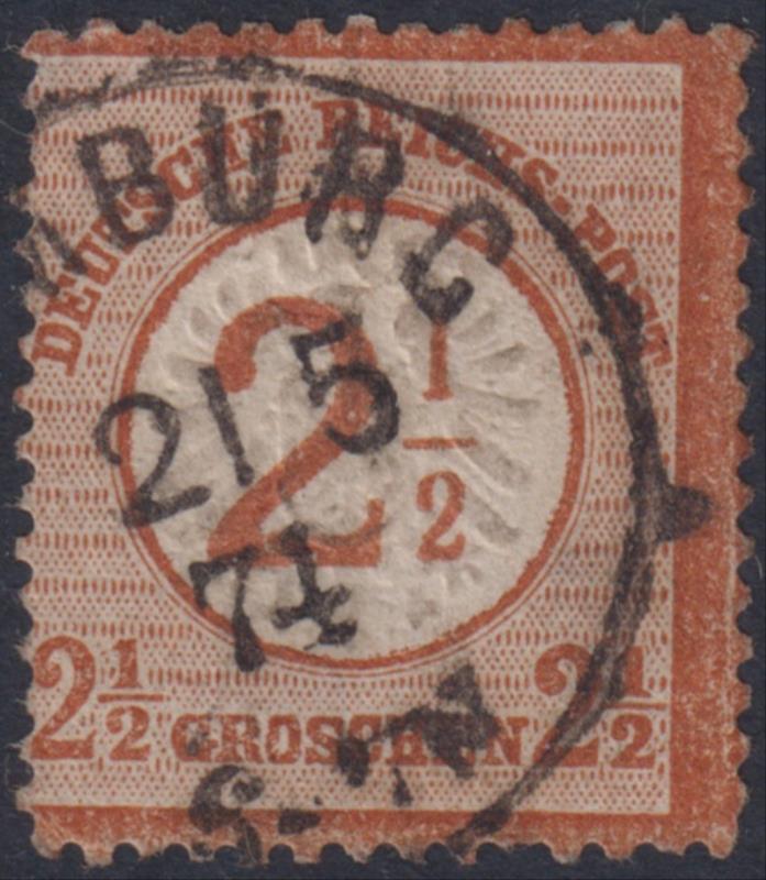 Germany 1874 2½g on 2½g chestnut with large figures over central Eagle, o/c. SG 29. Cat £80. GU/FU. (Image)