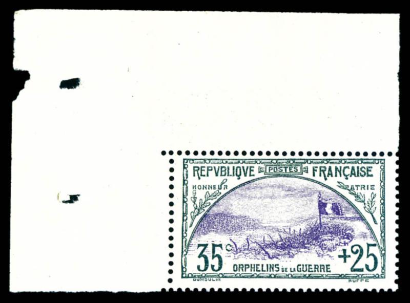 N°152, Orphelins, 35c +25c ardoise et violet coin de feuille, très bon centrage, TTB (certificat) Qualité: ** Cote: 725 euros (Image)