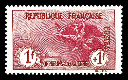 N°154, Orphelins, 1F +1F carmin, très bon centrage, SUP. R.R (certificat) Qualité: ** Cote: 2500 euros (Image)