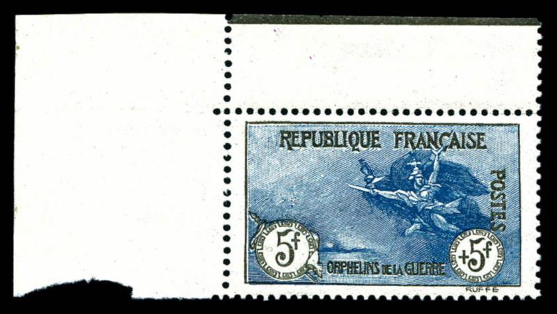 N°155, Orphelins, 5F +5F noir et bleu, coin de feuille intégral, TRES BON CENTRAGE, fraîcheur postale, SUPERBE (certificat) Qualité: ** Cote: 7250 euros (Image)