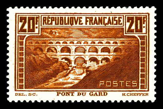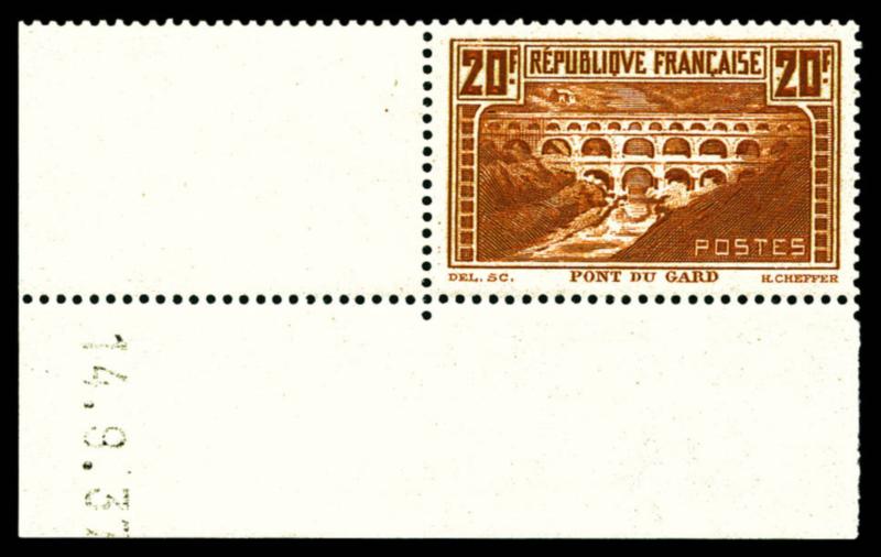 N°262A, 20f Pont du Gard Type I, bdf avec croix de repère. SUP Qualité: ** Cote: 575 euros (Image)
