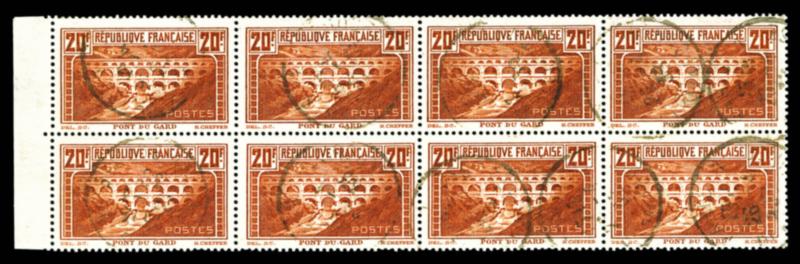 N°262Aa, 20F chaudron clair type I en bloc de 8 exemplaires bdf, SUP (certificat) Qualité: Oblitéré Cote: 3200 euros (Image)