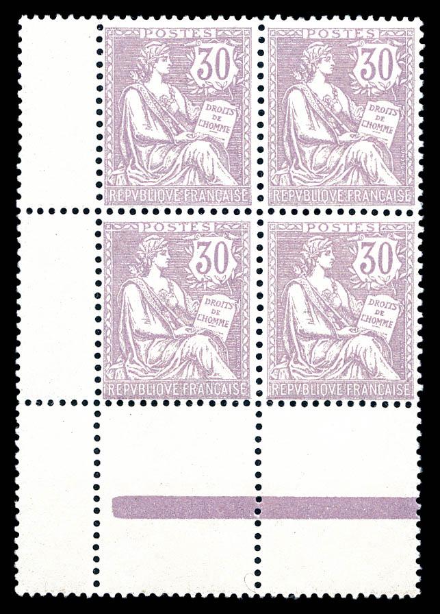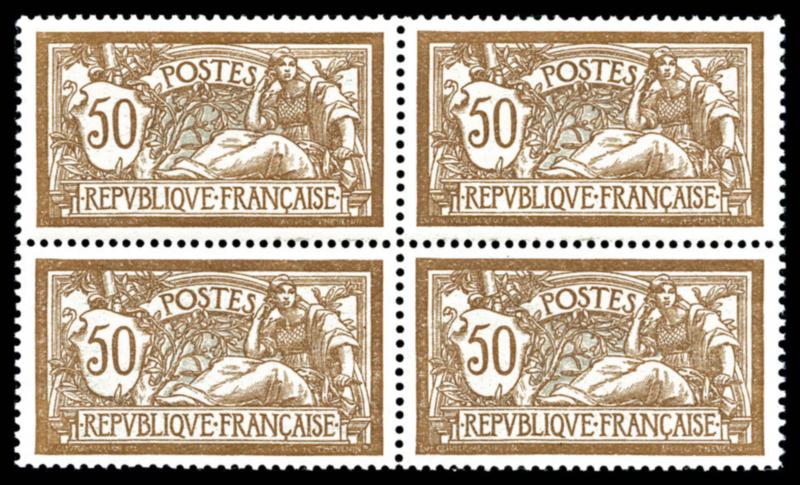 N°120, Merson 50c brun et gris en bloc de quatre, très bon centrage, SUP (certificat) Qualité: ** Cote: 4800 euros (Image)