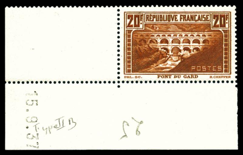 N°262c, 20f Pont du Gard type IIA, cdf. SUP (certificat) Qualité: ** Cote: 650 euros (Image)