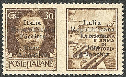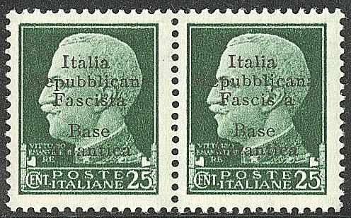 FRANCE. BASE NAVALE ITALIENNE. ** Sans "t" à Fascista. No 4a en paire avec normal. - TB (Certificat Diena) (cote Yvert : 950€) (Image)