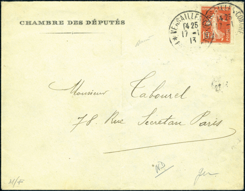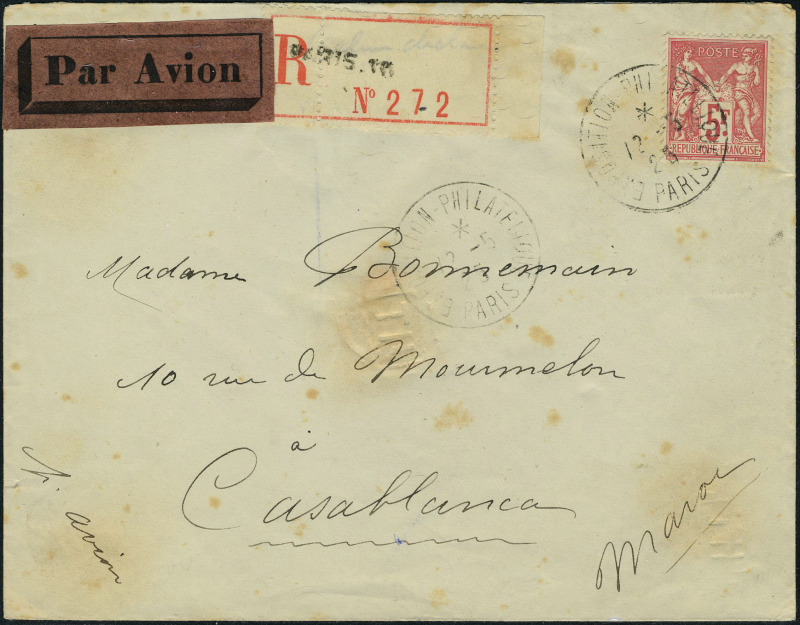 N° 216, 5f Paris sur LR PA obl 12.5.25 pour Casablanca, arrivére 14.5.25, qq rousseurs. Maury (Image)