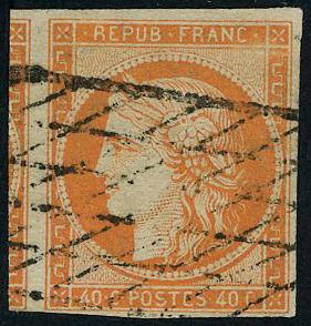 N° 5, 40c orange obl grille sans fin T.B. superbe, signé Brun (Image)