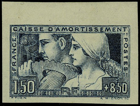 N° 252d, 1.50 + 8.50 Le Travail Non-dentelé BdF, signé Calves (Image)