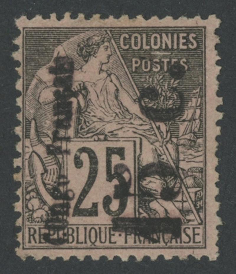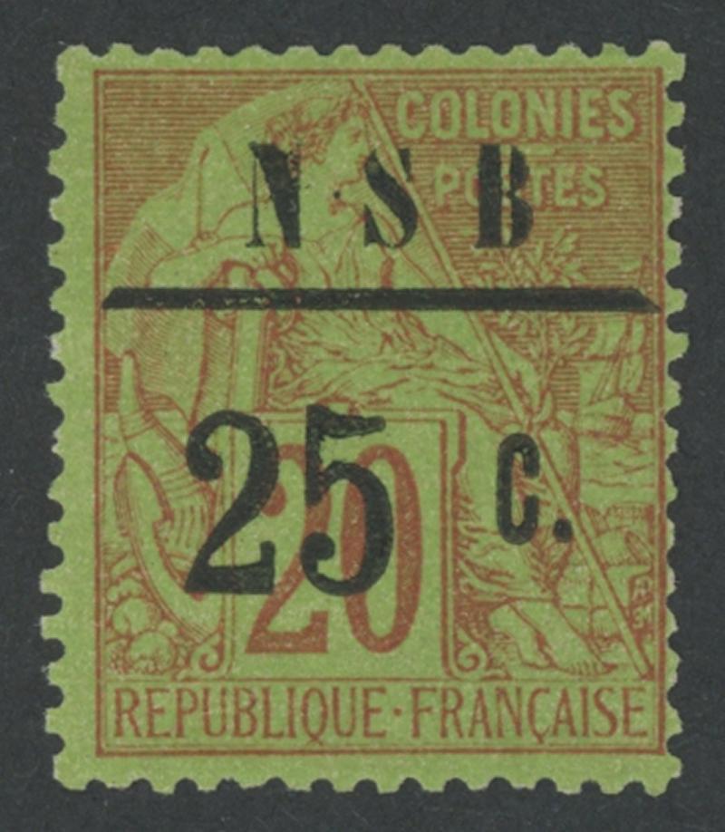 MADAGASCAR - NOSSI BE: 1890 Surcharges on French Colonies General Issues 'NSB/25c' on 20c red/green SG 13 (Dallay 10), very lightly mounted, Cat £425 (€475). Straphil Certificate (2015). (Image1)