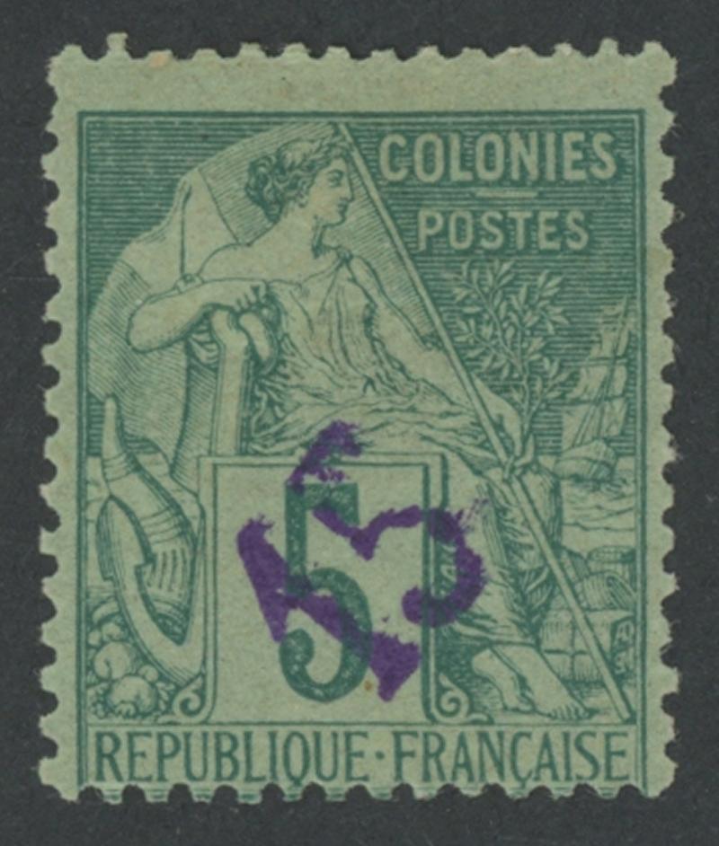 MADAGASCAR - DIEGO SUAREZ: 1890 Handstamped Surcharges in violet on French Colonies General Issues '15' on 5c green SG 2 (Dallay 4), centred low, large-part gum with hinge remainder, Cat £750 (€800). A Brun guarantee handstamp on reverse. (Image1)