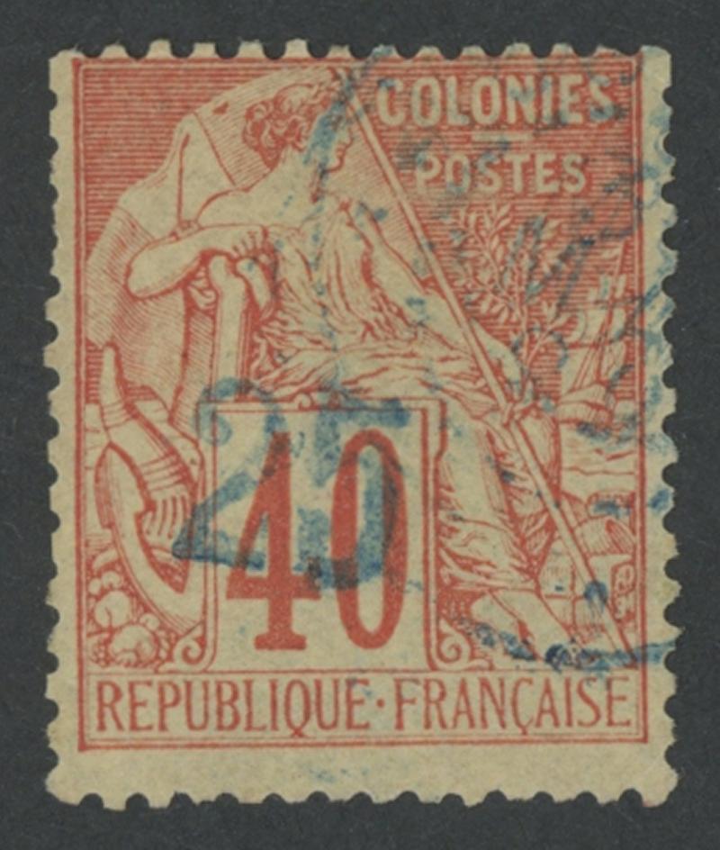 MADAGASCAR - NOSSI BE: 1889 Handstamped Surcharges in blue on French Colonies General Issues '25' on Perf 14x13½ 40c red/yellow SG 9 (Dallay 6), a few slightly uneven perfs at upper-left, partial indistinct 'NOSSI-BE' cds cancel in blue, Cat £950 (€850). Samuel Gautré Certificate (2014). (Image1)