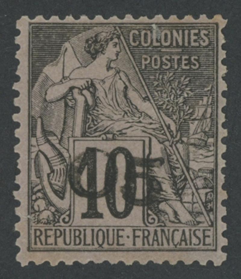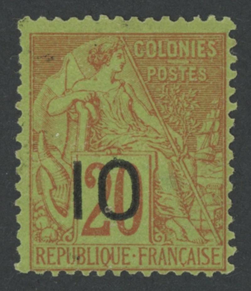 SENEGAL: 1887 Surcharges on French Colonies General Issues '10' Type 12 (Dallay Type VII) on 20c red/green SG 4f (Dallay 4 VII), a couple of slightly uneven perfs at upper-left, lightly mounted, small adhesion on gum, Cat £800 (€850). Pascal Behr Certificate (2019). (Image1)