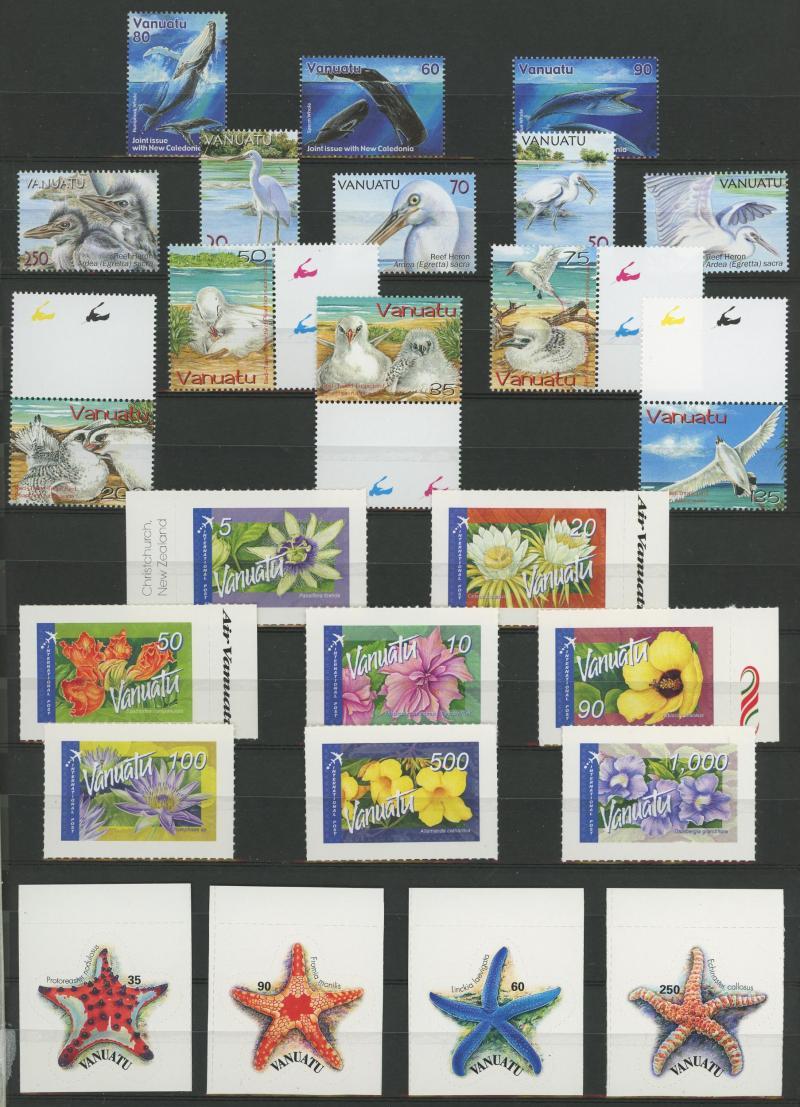 NEW HEBRIDES: 1980s-2000s Vanuatu issues on hagners and in stockbook with blocks, self-adhesives, strength in miniature sheets with duplicates, lots of thematic content, unmounted from 1985, also bundle of 1980s FDCs, condition very fine.