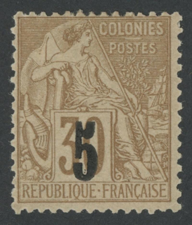 SENEGAL: 1887 Surcharges on French Colonies General Issues '5' Type 2 (Dallay Type II) on 30c cinnamon/drab SG 2a (Dallay 2 II), large-part original gum, Cat £475 (€550). Samuel Gautré Certificate (2007) states "rare TB (signé Calves/Brun)". (Image1)