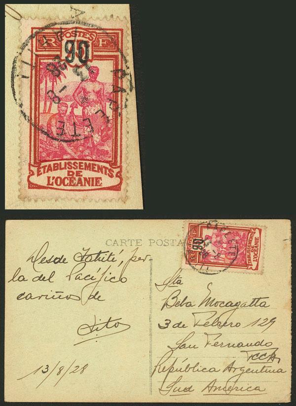 image RARE DESTINATION: Postcard sent from Papeete to Argentina on 13/AU/1928 franked with 90c. (Sc.63), very fine quality! (Image)