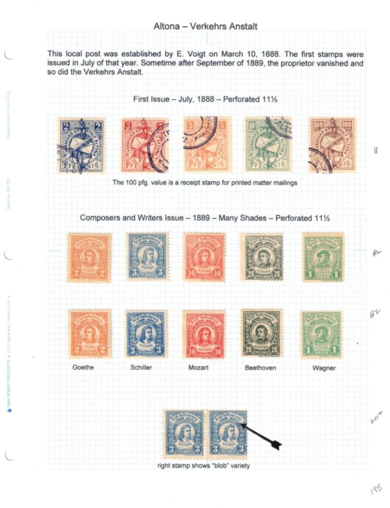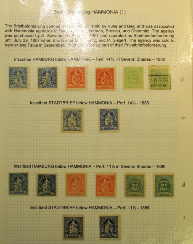 Hamburg Local Stamp Collection, 1886-1890 - An excellent local post collection of 115 mostly unused stamps and 22 postal stationery cards, envelopes, and wrappers. Neatly hinge mounted and annotated over 20 quadrille pages. Few flaws but generally fine or better. (Est $250-350) (Image)