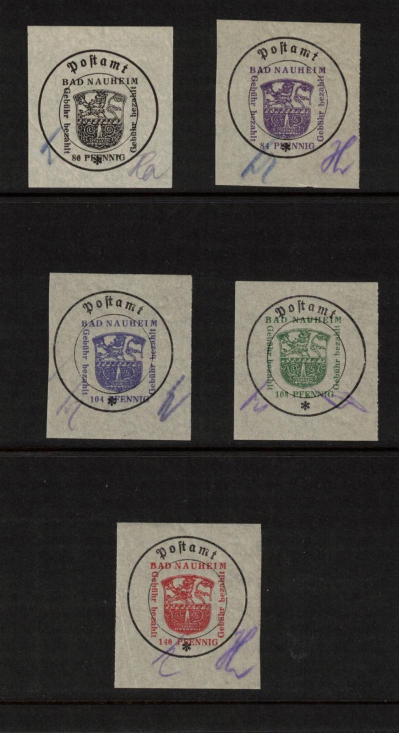 Germany Locals - Bad Nauheim Michel 4.I-8.I LH - 5 different issues, 2 with natural gum/paper bends. All with gum, F-VF. (2014 Michel 280) (Est $60-90) (Image)