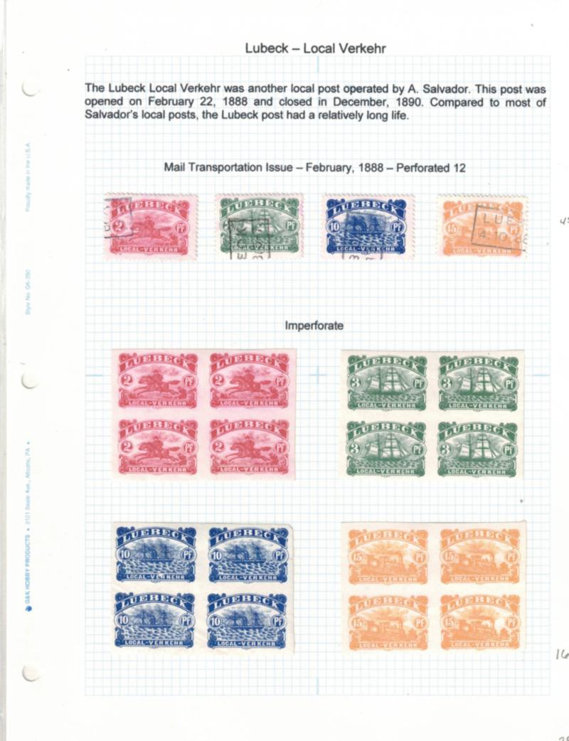 Lubeck and Mainz Locals Stamp Collection, 1880's - Local post collection of just over a dozen stamps or multiples from two different local post services, 1880's. Neatly written up and hinge mounted to quadrille pages. Generally Fine or better. (Est $120-150) (Image)