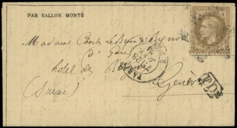 N°30 obl. Etoile 8 s. la Rare Gazette N°33, càd R. d'Antin 28/1/71, arr. GENEVE 13/2, TB (Image)