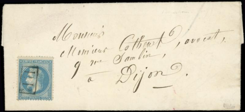 N°29B obl. P.P. noir s. LAC de BOURBONNE-LES-BAINS 2/3/71, arr. DIJON 9/3, reprise de la Poste Française à Bourbonne, texte intéressant sur l'épidémie de variole, TTB. C (Image)