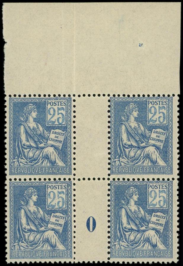 114 Mouchon, 25c. bleu, BLOC de 4 Mill.0, haut de feuille, TB (Image)