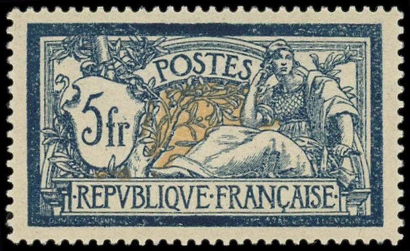 123 Merson, 5f. bleu et chamois, nuance foncée, bien centré, TB (Image)