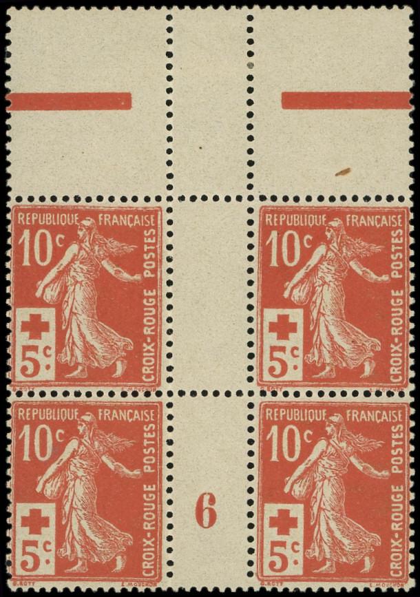 147 Croix Rouge, 10c. + 5c. rouge, BLOC de 4 Mill.6 bdf *, TB (Image)