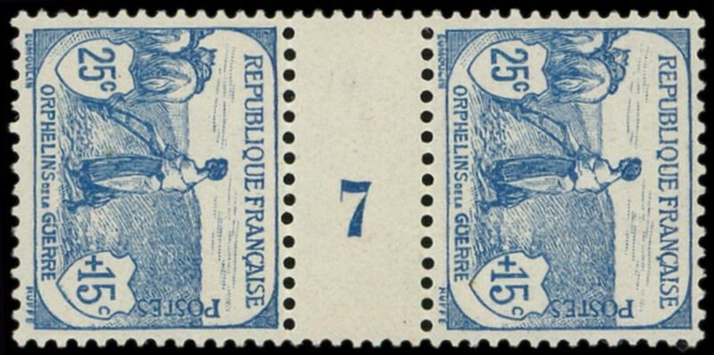 151 1ère série Orphelins, 25c. + 15c. bleu, PAIRE Mill.7, TB (Image)