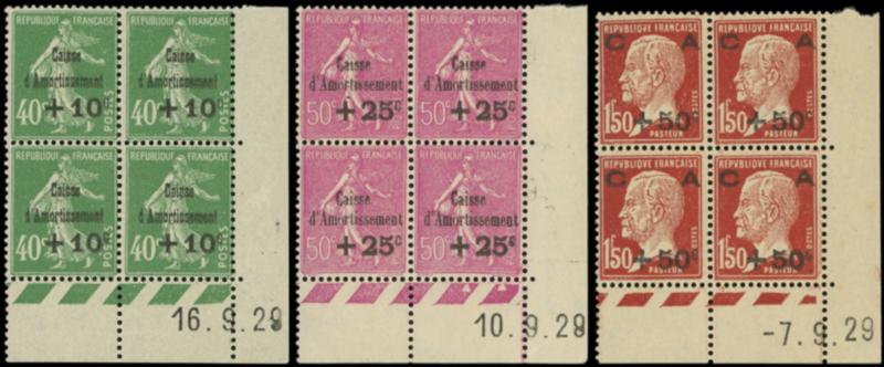 253/55 3ème série Amortissement, la série en BLOCS de 4 CD 16, 10 et 7/9/29, TB (Image)