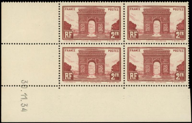 258 Arc de Triomphe, 2f. brun-rouge, BLOC de 4 CD 30/11/34, TB (Image)