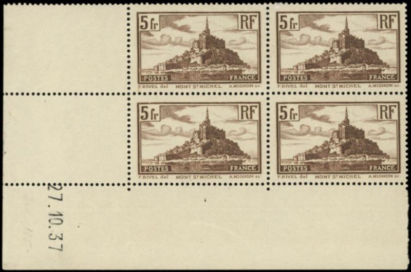 260 Mont St Michel, 5f. brun, T II, BLOC de 4 CD 27/10/37, TB (Image)