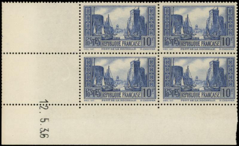 261 La Rochelle, 10f. bleu, T III, BLOC de 4 CD 12/5/36, TB (Image)
