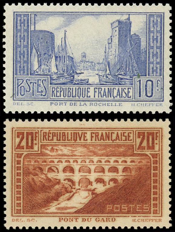 261b et 262e, La Rochelle, 10f. outremer pâle, T I et Pont du Gard 20f. chaudron T IIA rivière blanche, TB (Image)